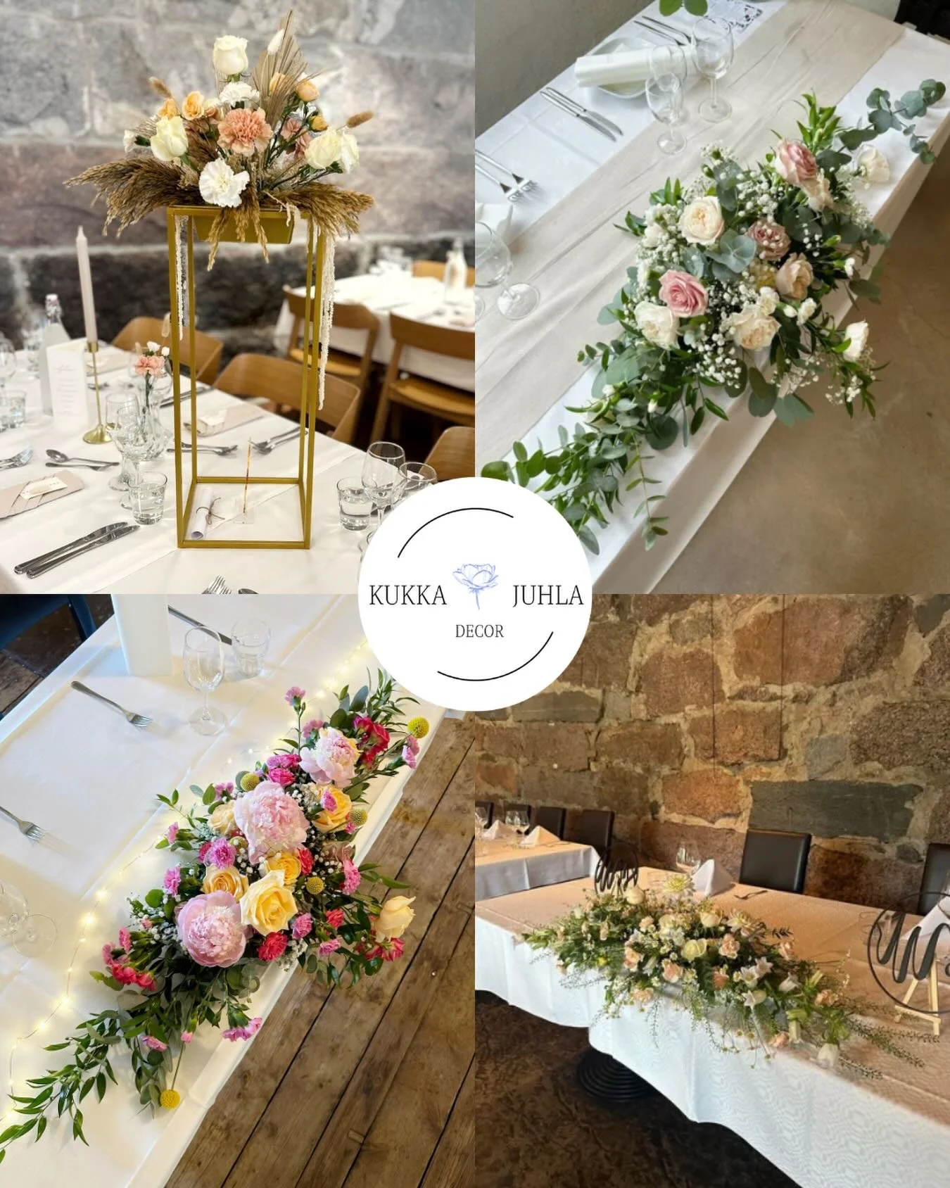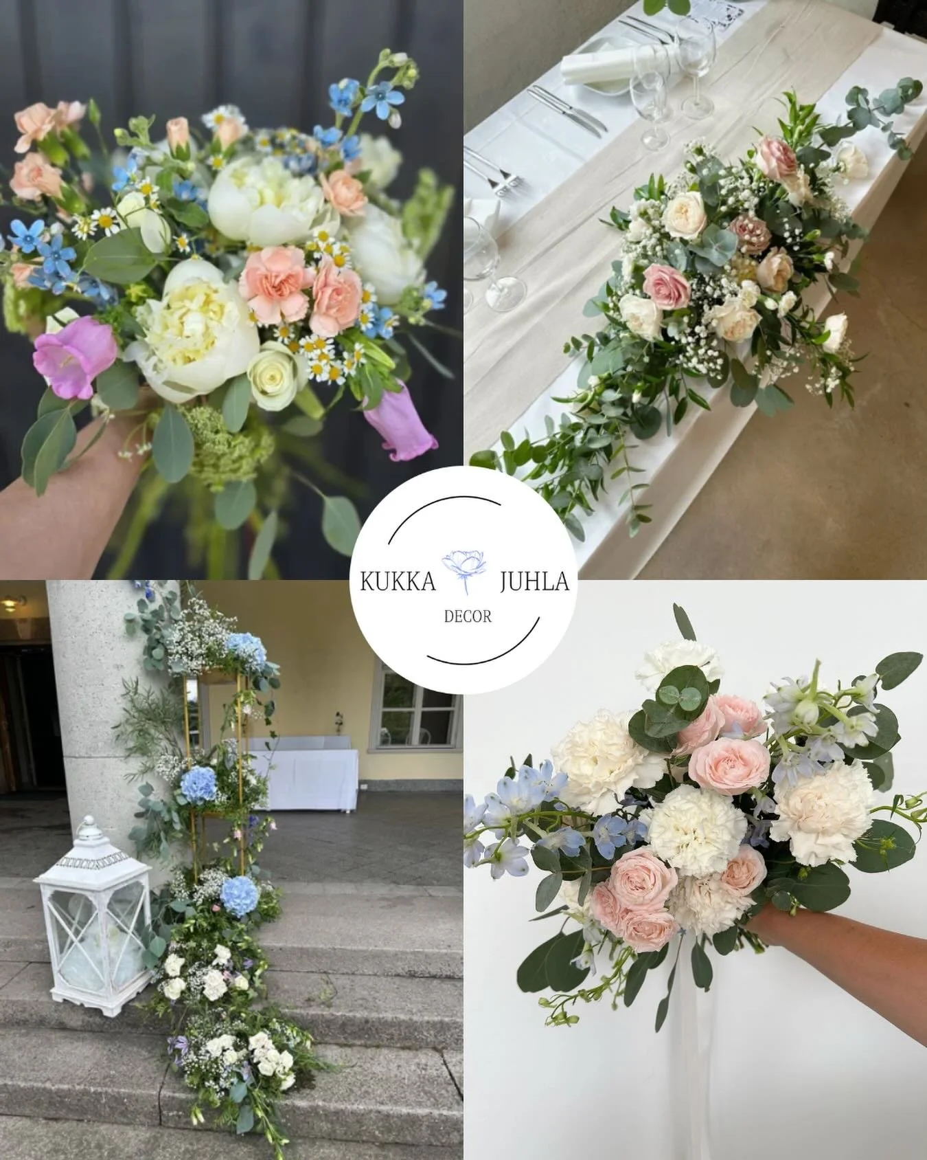 Jokainen kokonaisuus syntyy yksilöllisesti ja sydämellä, asiakkaan tyyliä ja juhlan tunnelmaa kunnioittaen.